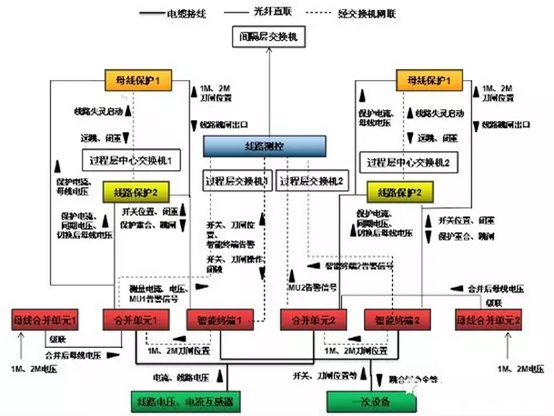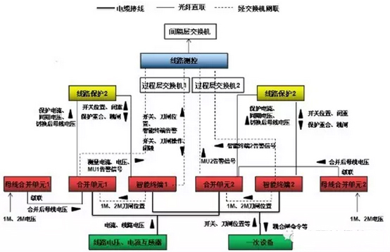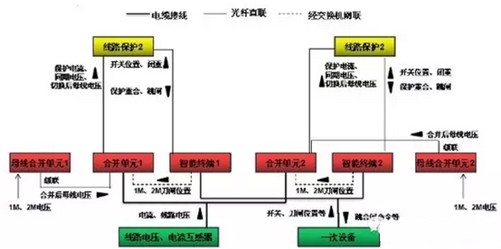 合并單元→線路保護(hù)傳遞:保護(hù)電流、同期電壓、切換后的母線電壓。