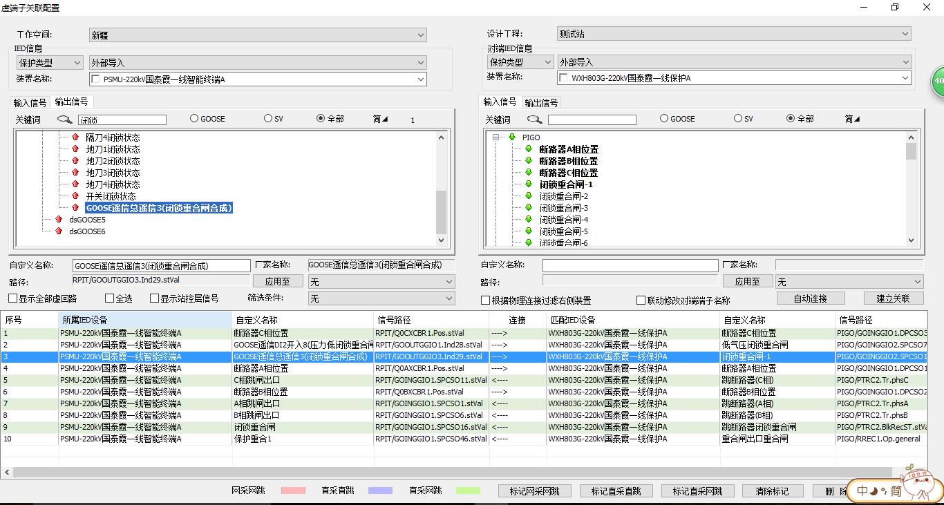 2016年元旦剛過沒多久的一天下午,新疆省院的談工給山東容弗的技術(shù)支持人員打電話反映廠家出的SCD文件簽入到“智能變電站設(shè)計(jì)系統(tǒng)2.0”上的時(shí)候就會(huì)出現(xiàn)從國(guó)泰霞一/二線智能終端裝置的“閉鎖重合閘合成”信號(hào)到國(guó)泰霞一/二線保護(hù)裝置的“閉鎖重合閘”信號(hào)缺失的現(xiàn)象,當(dāng)時(shí)山東容弗的技術(shù)人員正在從太原前往銀川的火車上,顧不上旅途的勞累,技術(shù)人員馬上記錄了用戶反映的使用問題并接收用戶發(fā)來(lái)的SCD文件資料。為了避免問題的拖延給用戶帶來(lái)進(jìn)一步的不便,技術(shù)人員在第一時(shí)間先向公司的研發(fā)人員進(jìn)行了反饋。