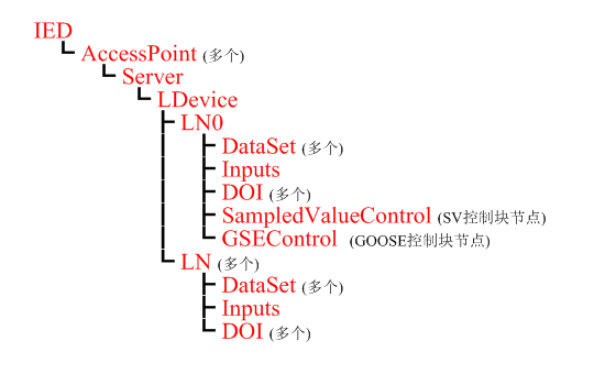 IED部分各個智能電子設(shè)備的具體內(nèi)容,SV、GOOSE的發(fā)布和訂閱都在此描述。