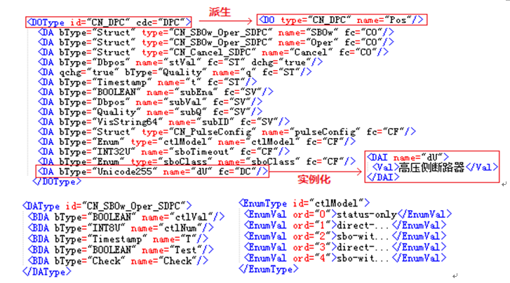 DataTypeTemplates部分定義邏輯節(jié)點(diǎn)類型LNodeType、數(shù)據(jù)對象類型DOType、數(shù)據(jù)屬性類型DAType等數(shù)據(jù)類型模板。