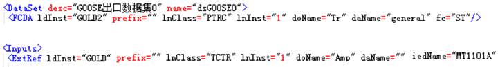 SV和GOOSE的訂閱是在Inputs節(jié)點(diǎn)下定義的,如下圖所示。Inputs節(jié)點(diǎn)由多個外部引用條目ExtRef組成,每個外部引用條目指定了內(nèi)部輸入虛端子的地址intAddr和外部輸出虛端子地址(由iedName、ldInst、prefix、lnClass、lnInst、doName、daName構(gòu)成),根據(jù)這些信息可以找到內(nèi)外虛端子對應(yīng)的數(shù)據(jù)對象DO甚至具體的數(shù)據(jù)屬性DA。