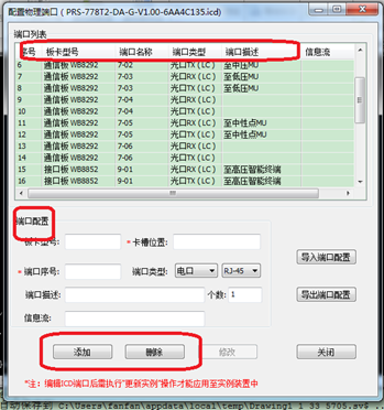 目前智能站二次設備廠家提供的ICD文件,一部分已經(jīng)將裝置背板的信息集成到了的ICD文件中,山東容弗的設計系統(tǒng)通過解析ICD文件中Communication部分的內容,將物理端口以板卡型號、端口名稱、端口類型的方式作為裝置的屬性展示出來,如下圖所示,作為光纜纖芯連接的基礎。